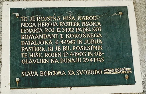 In memory of Franz and Jurij Pasterk, the Association of Carinthian Partisans attached a plaque to their birthplace with following inscription: