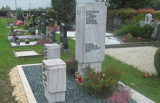 Na novem pokopališču, ki leži izven vasi, proti zahodu, je lepo urejeno partizansko grobišče, v katerem počivajo padli borci: Oto Vinček, umrl za posledicami ran, ki jih je dobil v borbi; Ljubo Grabner-Vrhan, doma z Gornjega Jezerskega, padel dne 19. novembra 1944 v Kopanjah pod Jepo / Kopein unter dem Mittagskogel, do 22. julija 1945 tudi tam pokopan; Feliks Hobel-Janko, doma iz Šentvida v Podjuni / St. Veit im Jauntal, padel dne 12. decembra 1944 pri Trupiju v Rutah / Kreuth, prekopan na maloško pokopališče 22. julija 1945; Janko Jaber-Kazimir, padel 5. junija 1944 pri Črniklovski skali nad Žužalčami / Susalitsch, prekopan 22. julija 1945; Jože Hodišek, padel 7. decembra 1944 v Bistriškem potoku, prekopan 22. julija 1945; po priimku neznani borec Jože, padel 1. avgusta 1944 pri Kovaču-Omanu na Stobci / Stobitzen, prekopan 22. julija 1945; Tonček Hobel, doma iz Pogrč pri Šentvidu v Podjuni / Pogerschitzen bei St. Veit im Jauntal, padel 19. novembra 1944, prekopan 28. oktobra 1945; Stanko, borec z neznanim priimkom, ubit v boju 19. novembra 1944 v Breznici / Friessnitz, premeščen 28. oktobra 1945; Franc Gregori, padel na Grajšci planini, prekopan 28. oktobra 1945.